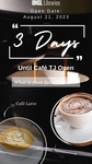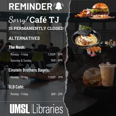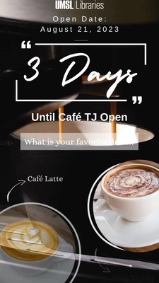 Posted Text: 2 days left until Café TJ opens! Make sure to stop by and grab a drink for yourself. #UMSL #UMSLLibraries #CafeTJ